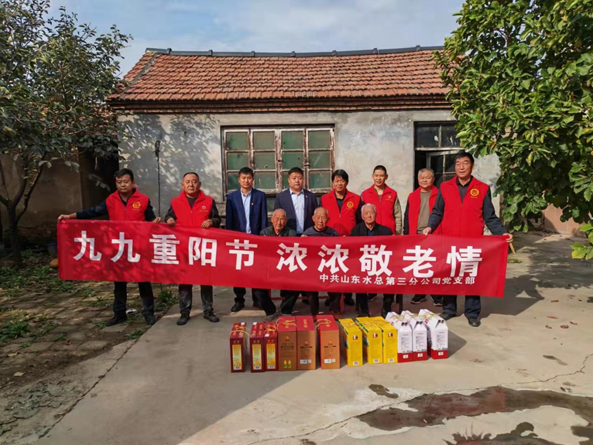 为弘扬中华民族尊老敬老的光荣传统,10月14日重阳节这天,第三分万搏球赛_万搏(中国) 副总经理杨绪辉、王庆捷一行前往万搏球赛_万搏(中国) 邹平市孝妇河提升改造工程施工4标项目部所在地,在高书记带领下看望东吕村的老党员们,为他们带去万搏球赛_万搏(中国) 党委的关怀和温暖,送去慰问品并致以节日的问候和祝福。杨绪辉同老党员们亲切拉家常,详细询问了老党员们的生活情况和身体状况,嘱咐他们一定要保重身体,对他们为国家、为社会做出的贡献表达了崇高敬意。