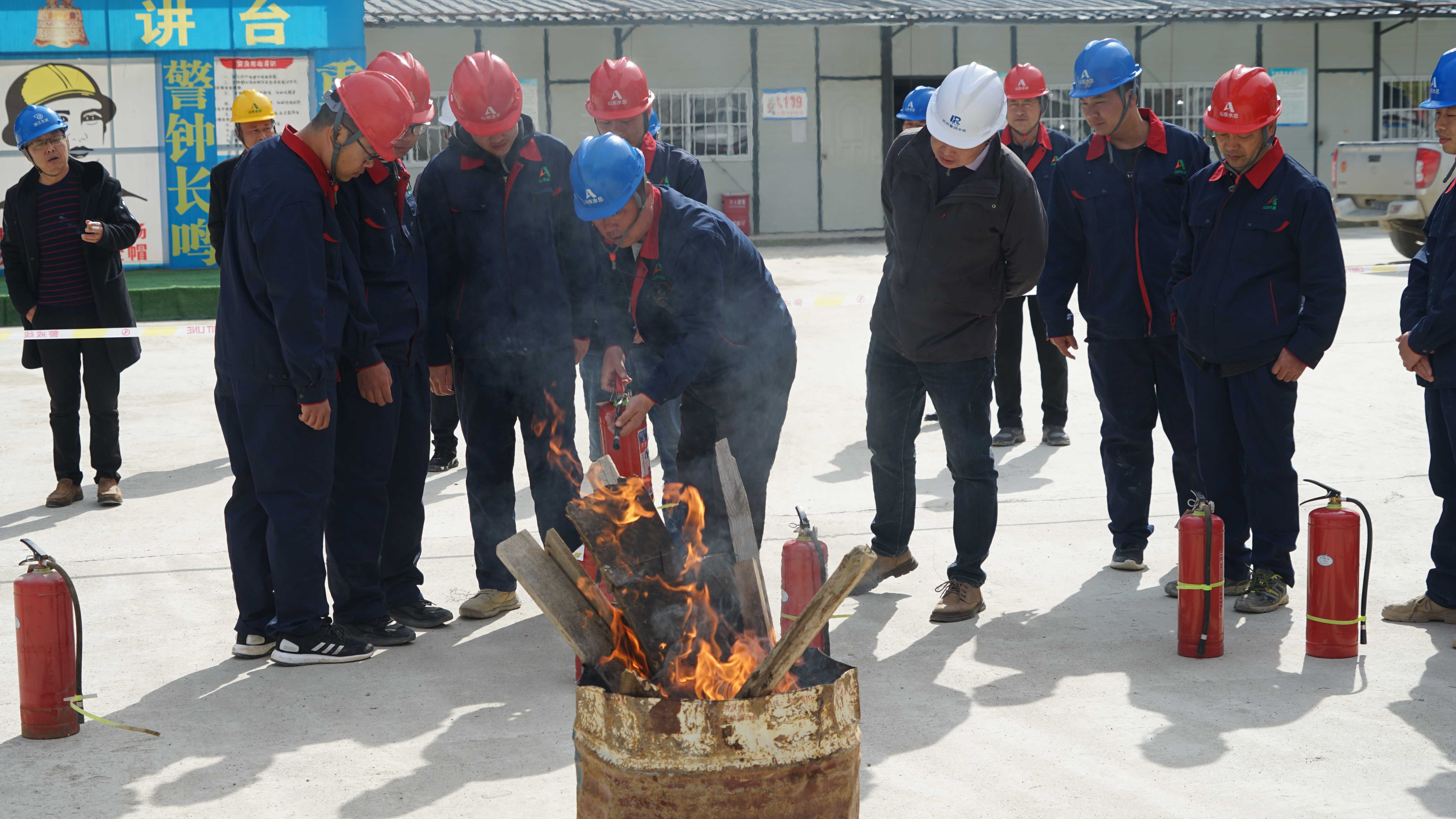 本次的消防安全应急演练结合工程形象进度,项目部安全管理人员针对消防设施的使用方法进行详细的讲解和实操示范。随后,参与人员进行了现场突发火情模拟演练。