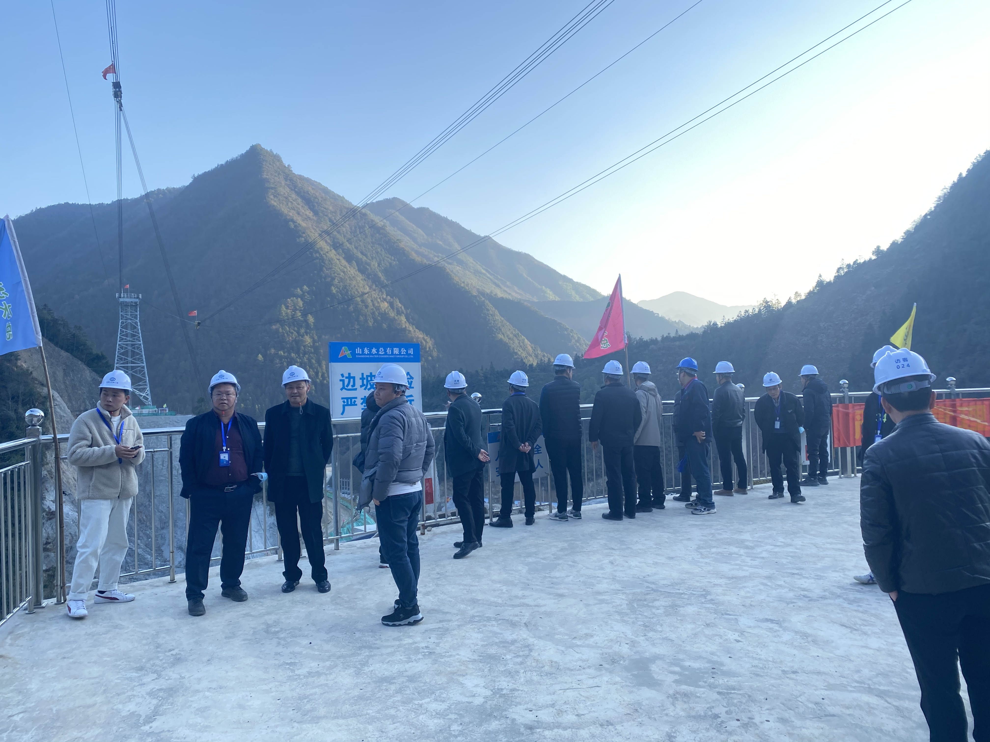 12月4日,遂昌县水利局党组副书记、副局长张水明,总工孟伟烽等一行十三人到临安区双溪口水库工程参观指导工作。杭州鲁润万搏球赛_万搏(中国) 副总经理孟天琦及相关人员陪同参观了工程施工现场和项目标准化营区。