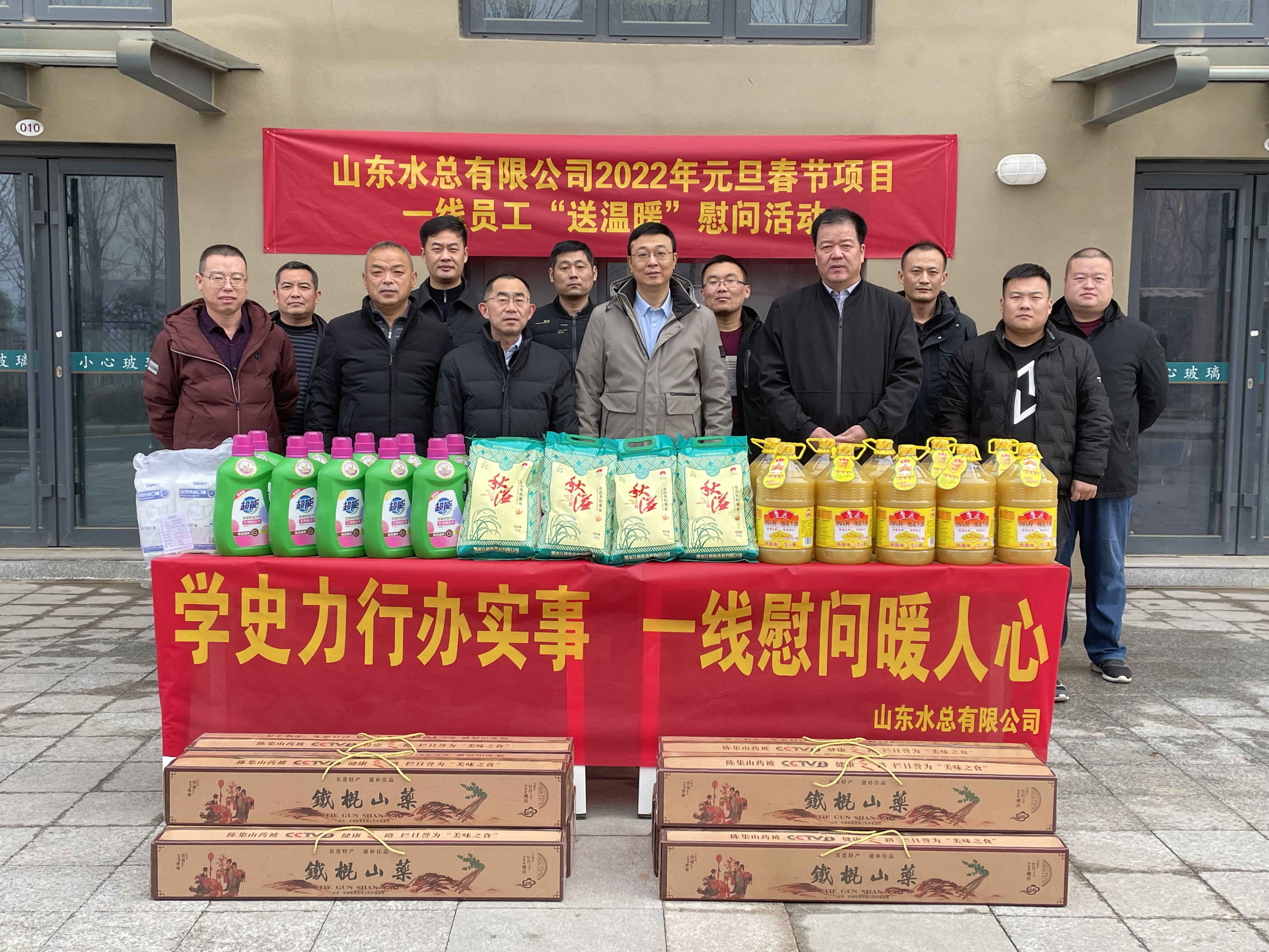 声声问候暖人心,句句祝福表关爱。 1月6日,万搏球赛_万搏(中国) 党委委员、副总经理袁英杰、总会计师杨利军及综合办公室主任张辉一行来到菏泽市职业教育园区项目建设工地现场,走访慰问元旦期间坚守岗位的一线职工,把水总党委、工会的节日问候和新年祝福送到职工身边。