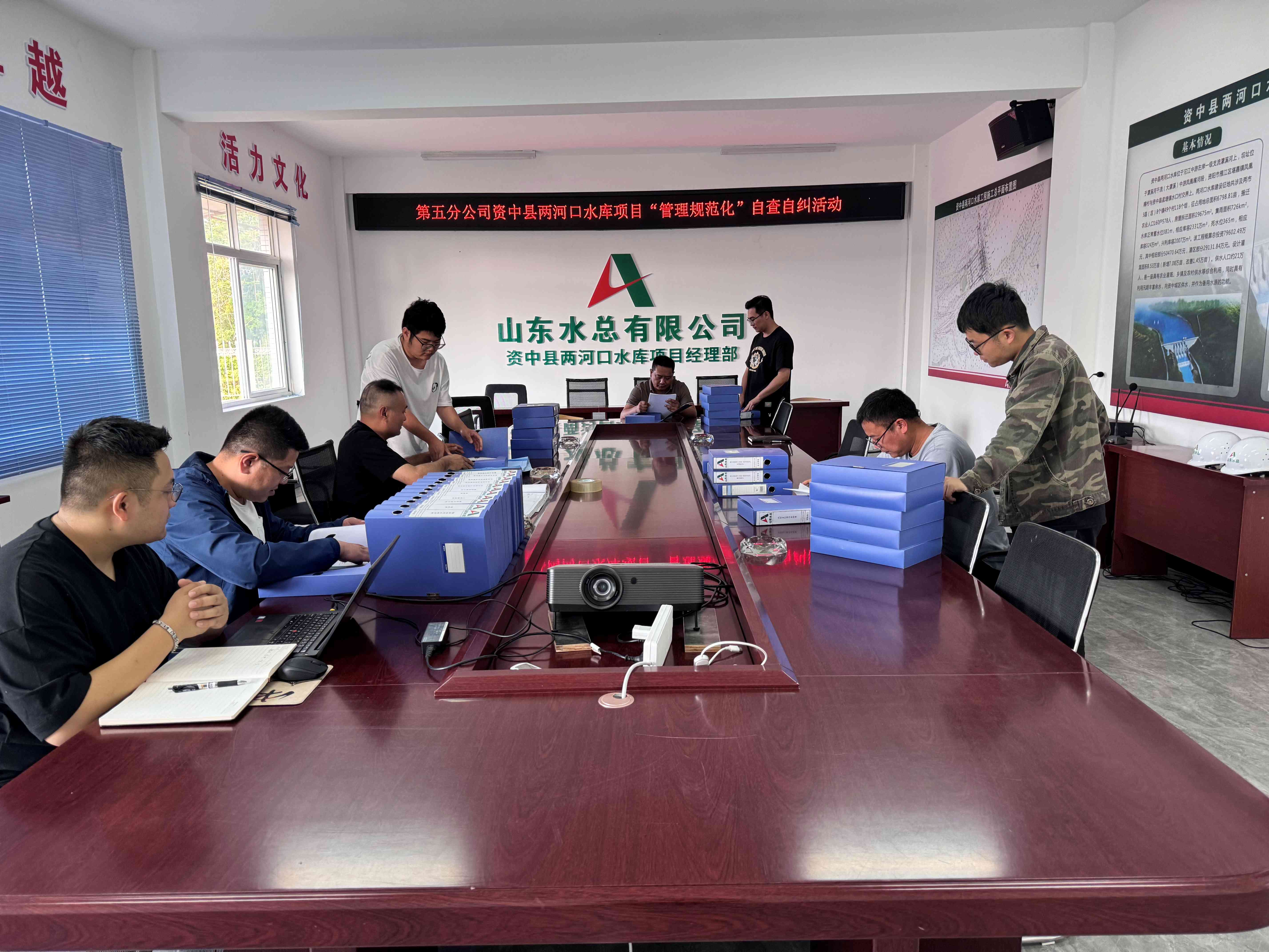 为深入贯彻落实万搏球赛_万搏(中国) “六个主题年”活动工作要求,切实提高项目管理水平,第五分万搏球赛_万搏(中国) 总经理蔡国森带队从质量、安全、进度、机料、成本管控、资金支付等方面入手,对资中县两河口水库项目的施工管控、内业资料归档等方面进行全面排查整治。