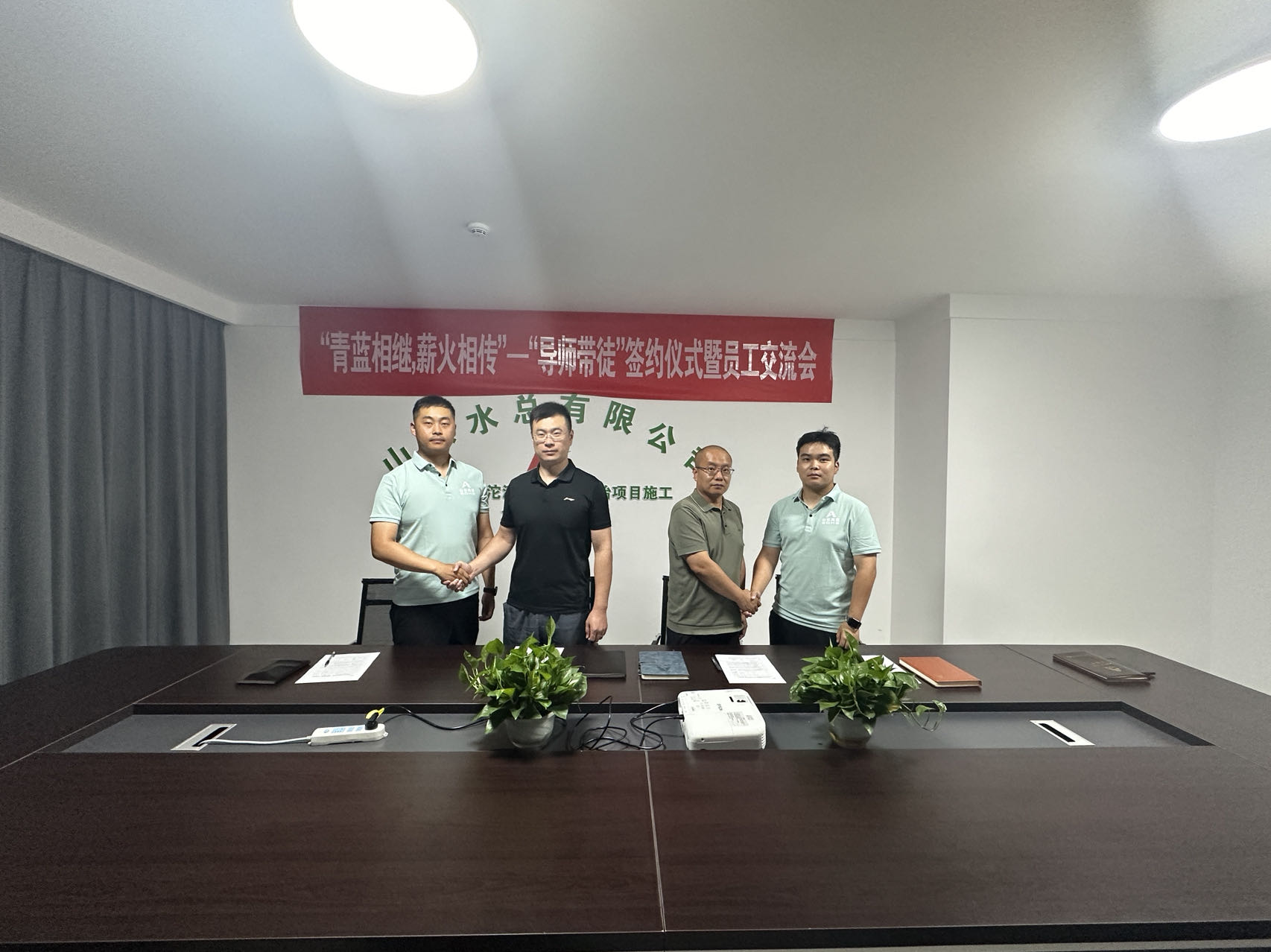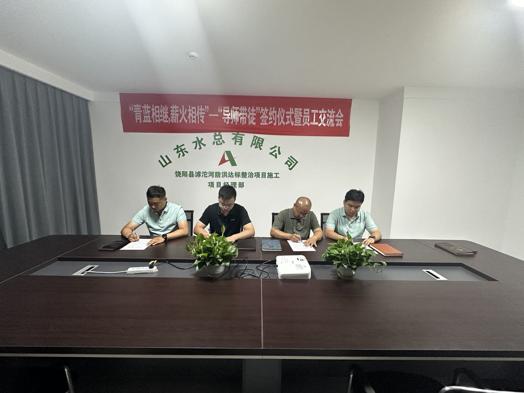 为帮助新入职员工快速转变角色,更好地立足岗位实现自我价值,近日,由第二分万搏球赛_万搏(中国) 党支部牵头,在饶阳县滹沱河防洪达标整治施工项目经理部组织开展“导师带徒”签约仪式暨员工交流会。