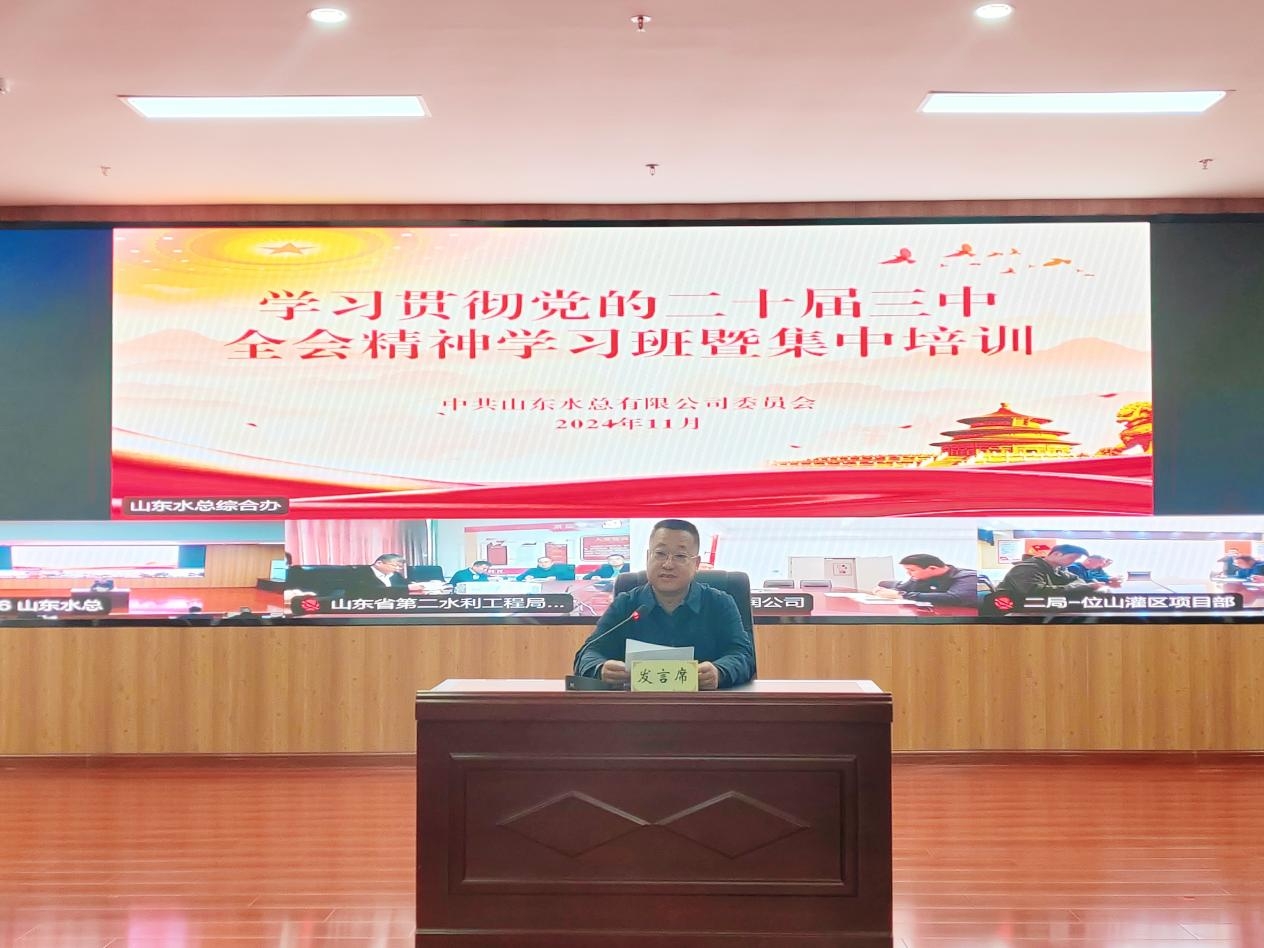 为深入学习贯彻落实党的二十届三中全会精神,按照山东高速集团党委统一部署,11月18日,山东水总万搏球赛_万搏(中国) 党委组织举办了党的二十届三中全会精神学习班暨集中培训,教育引导广大党员干部深入领会党的二十届三中全会的重大意义和丰富内涵,切实把学习成效转化为工作实效,推动习近平总书记重要指示要求、全会各项部署及上级党委工作安排在万搏球赛_万搏(中国) 落实落地。本次专题学习班为期三天,采取辅导报告讲座、分组集中学习、交流研讨等相结合方式。