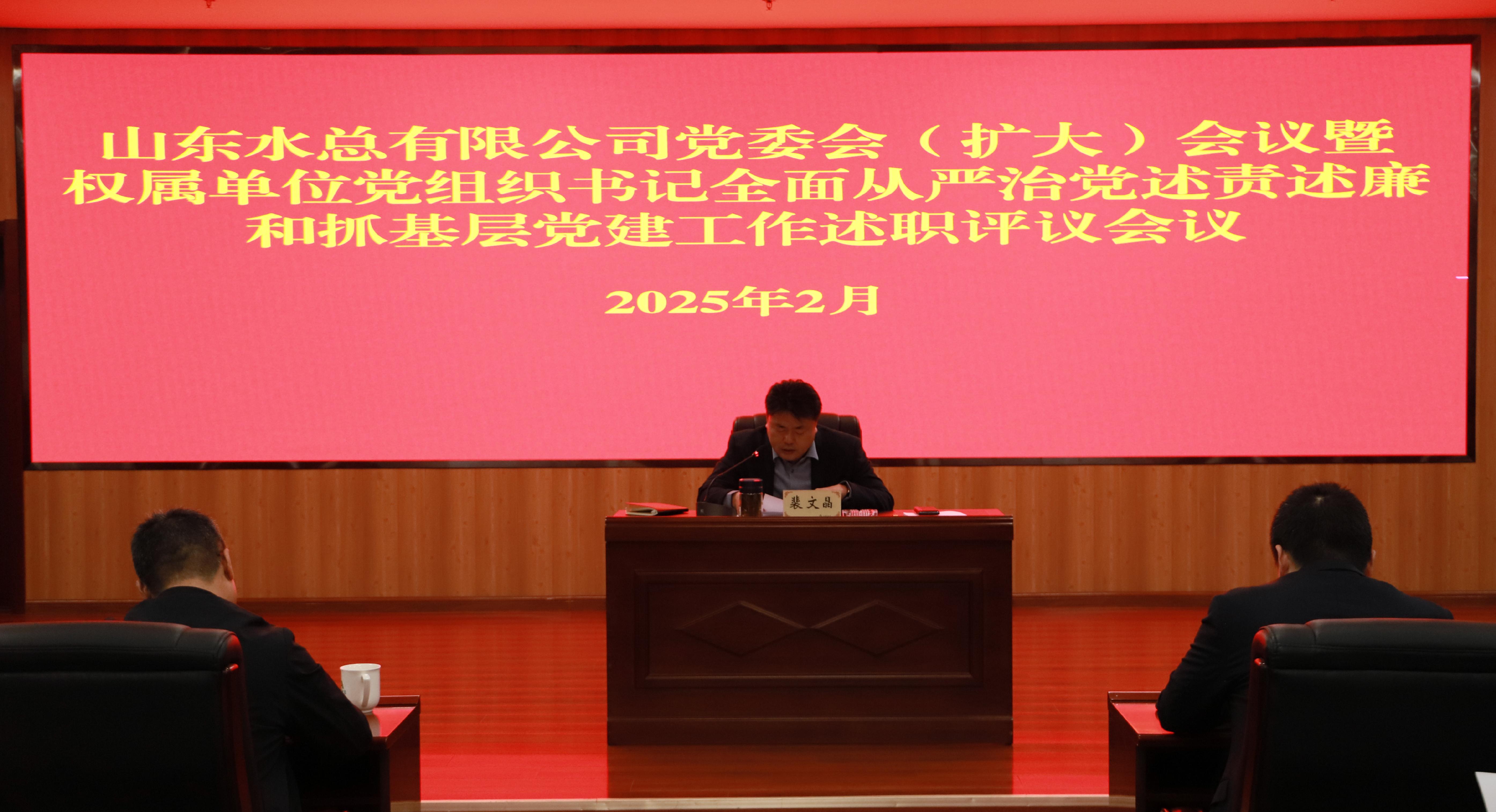 2月6日,万搏球赛_万搏(中国) 召开党委(扩大)会议,分别听取权属单位党支部书记2024年度全面从严治党述责述廉和抓基层党建工作述职,并进行现场评议。万搏球赛_万搏(中国) 党委书记、董事长裴文晶同志主持会议并讲话,万搏球赛_万搏(中国) 党委班子成员及高管、总部有关部室负责人及权属单位党组织书记和基层党员代表参会。