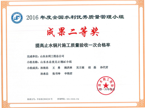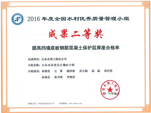 万搏球赛_万搏(中国) “竟无止境QC小组”荣获2016年全国水利优秀质量管理小组