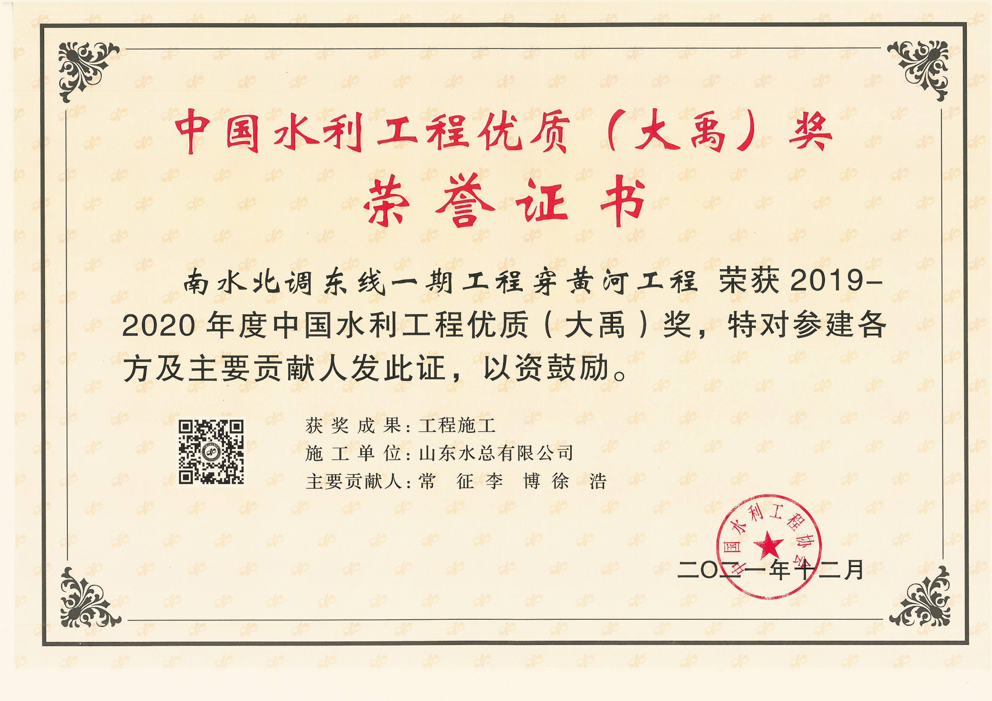 南水北调东线一期工程穿黄河工程(大禹奖)