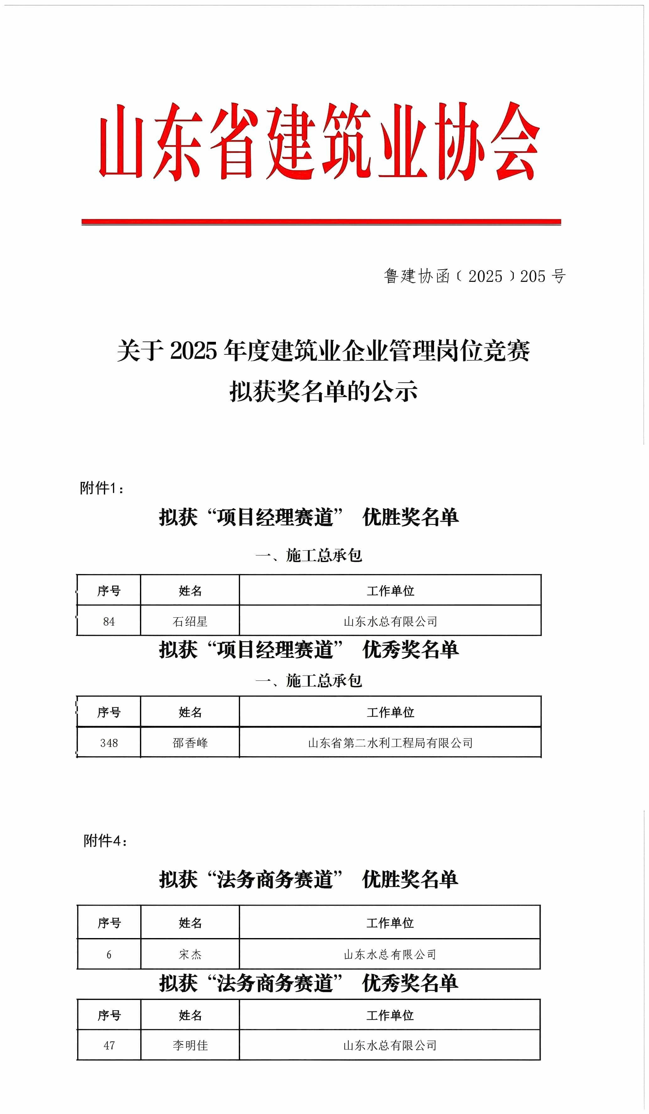 近日,由山东省建筑业协会发起的2025年度建筑业企业管理岗位竞赛圆满落幕,万搏球赛_万搏(中国) 选送的参赛人员凭借扎实的专业素养、精湛的管理能力脱颖而出,在“项目经理赛道”中,第三分万搏球赛_万搏(中国) 石绍星获优胜奖,二局有限万搏球赛_万搏(中国) 邵香峰获优秀奖;在“法务商务赛道”中,企业管理部宋杰获优胜奖,第三分万搏球赛_万搏(中国) 李明佳获优秀奖。以上荣誉的获得充分彰显了万搏球赛_万搏(中国) 建筑行业管理岗位人才的专业素养与创新活力。