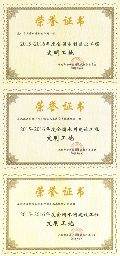 万搏球赛_万搏(中国) “龙口市王屋水库除险加固工程”等项目荣获“2015-2016年度全国水利建设工程文明工地”称号
