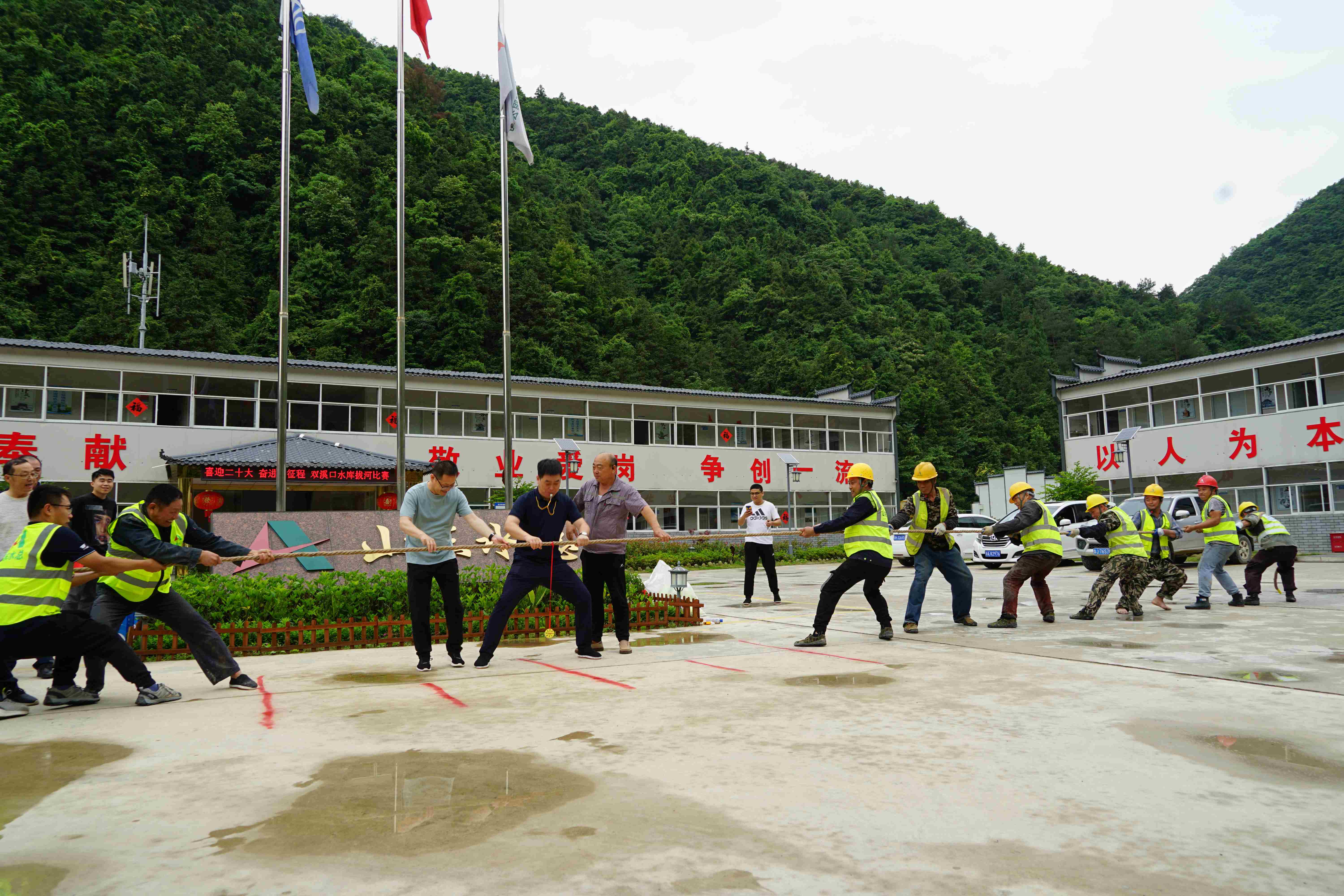 5月30日,杭州市临安区双溪口水库工程临时党支部联合杭州市临安区水利水电局机关第二党支部,组织各参建单位开展“喜迎二十大,奋进新征程”拔河比赛。