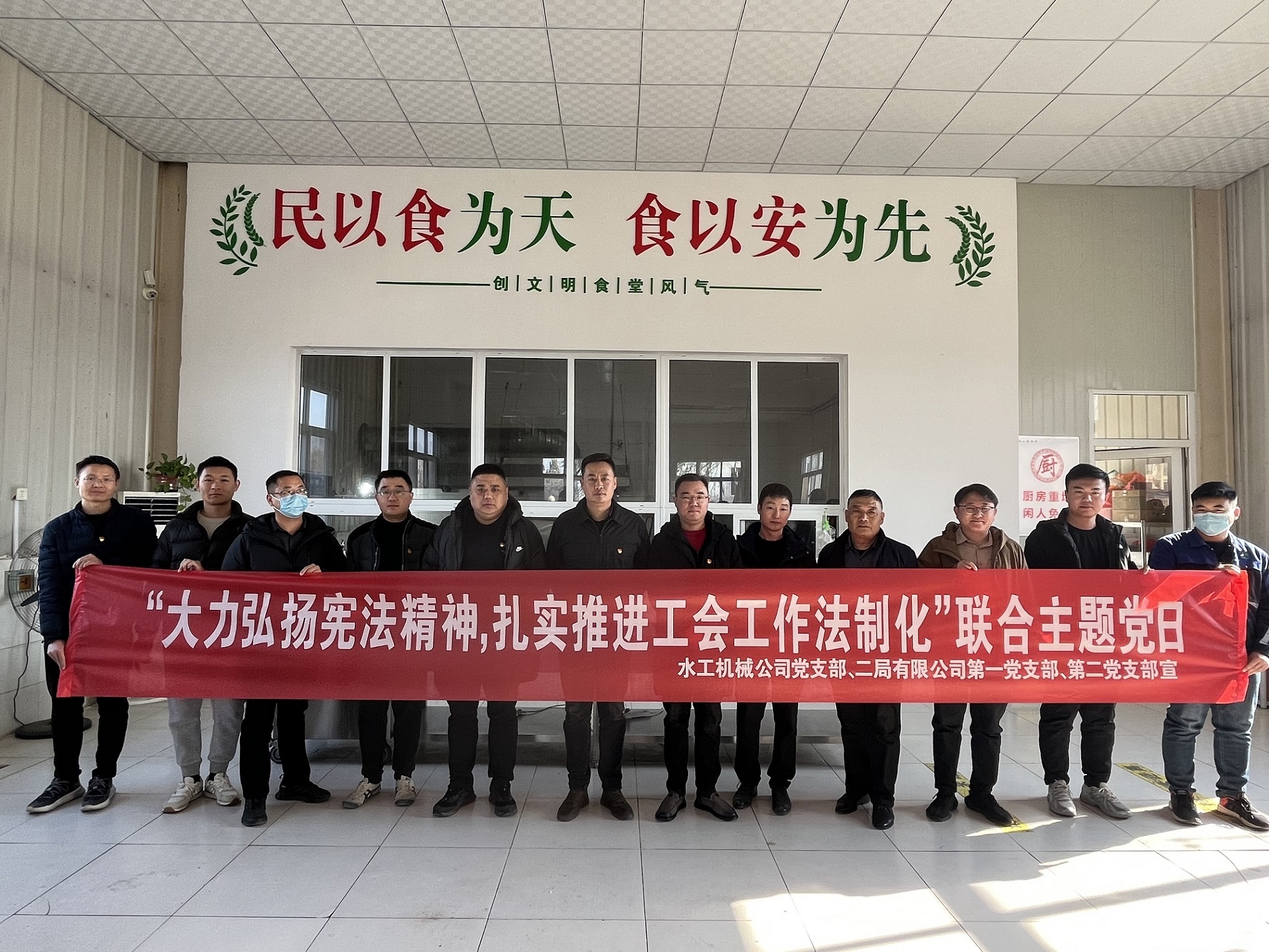 2023 年 12 月 4 日是第十个国家宪法日,为大力弘扬宪法精神,进一步营造尊法学法守法用法浓厚氛围,增强党员干部的宪法意识和党性修养。12月4日,水工机械万搏球赛_万搏(中国) 党支部联合二局有限万搏球赛_万搏(中国) 第一党支部、第二党支部共同开展了“大力弘扬宪法精神,扎实推进工会工作法制化”联合主题党日活动。